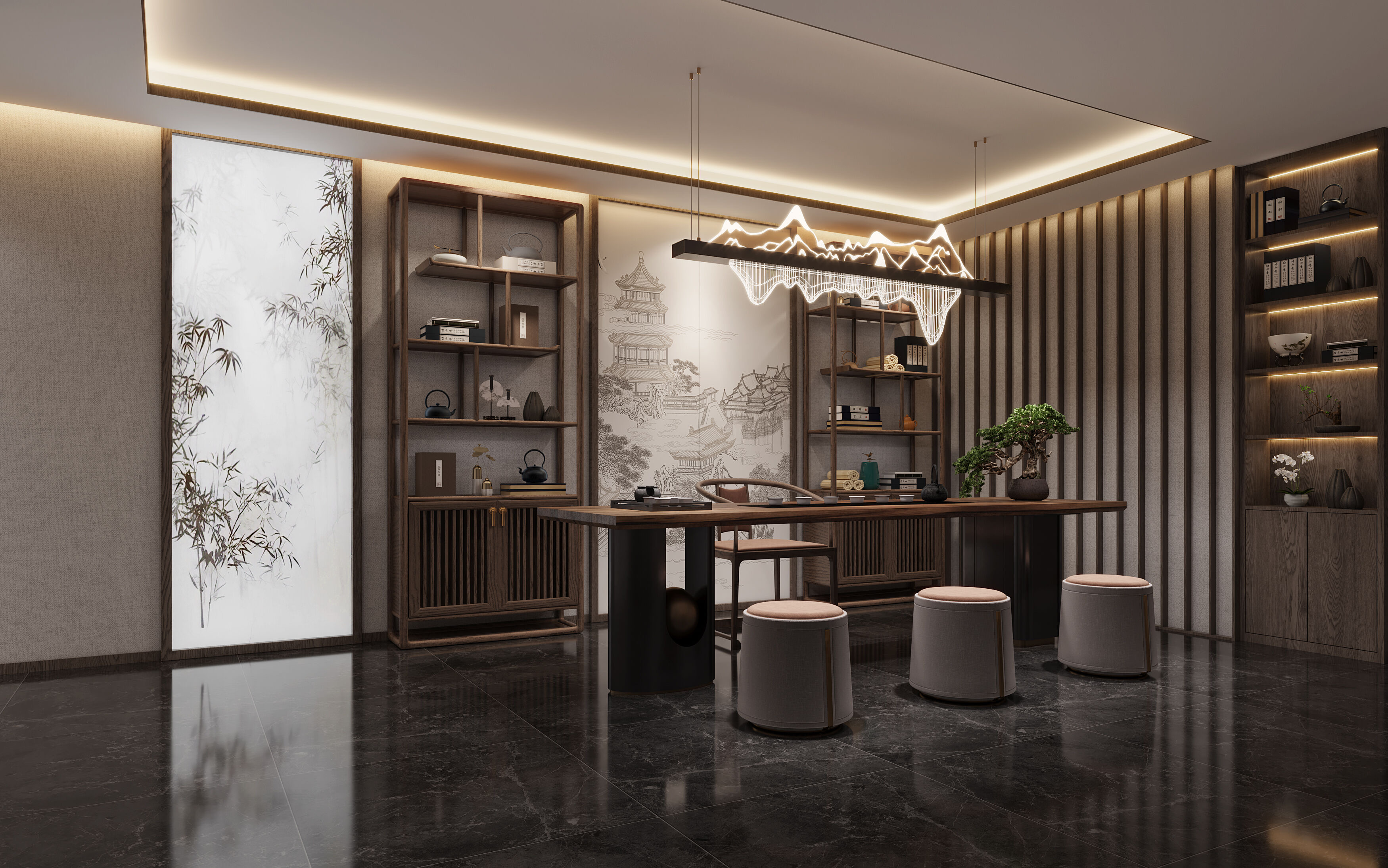 外間休閑區域,環境優雅僻靜;在休息時可以在落地窗前眺望風景,或者與兩三好友與茶臺旁聊一聊彼此近況,談一談大夢人生;在輕松愜意的環境中,放下塵囂,添些閑適,清水煮茶,偷這半世浮生。
