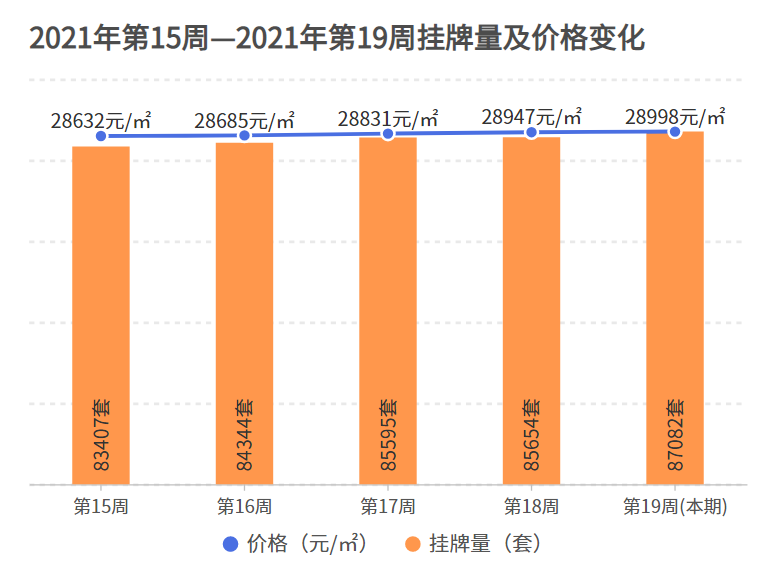 據(jù)諸葛找房寧波站數(shù)據(jù)統(tǒng)計(jì),上周(5.3-5.9)寧波二手房掛牌房源量為87082套,相比上上周增加1428套,盡管市場冷意明顯,但是二手房價(jià)格仍然保持堅(jiān)挺,上漲了0.18%,為28998元/平。