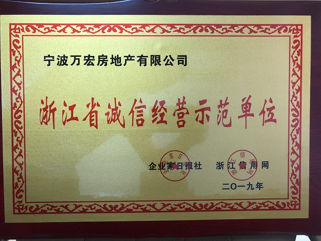 2018年度浙江省誠信經營示范單位