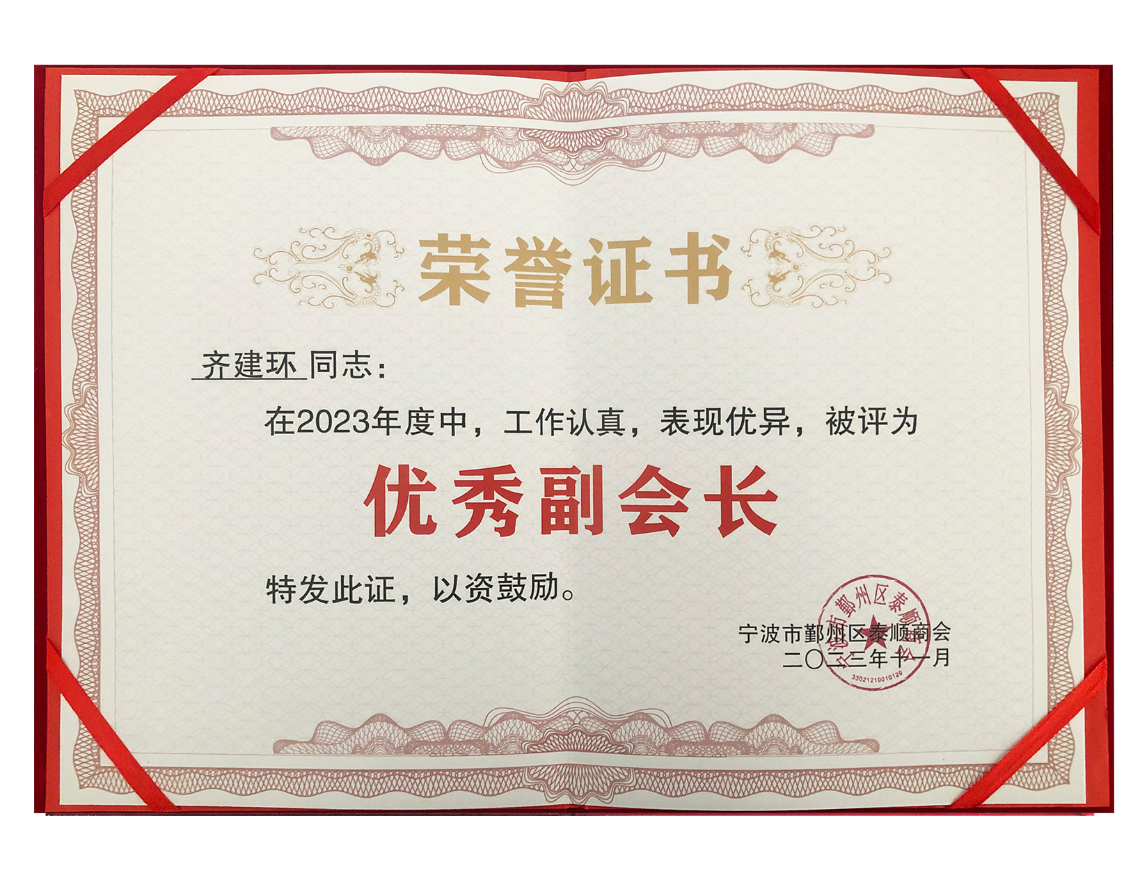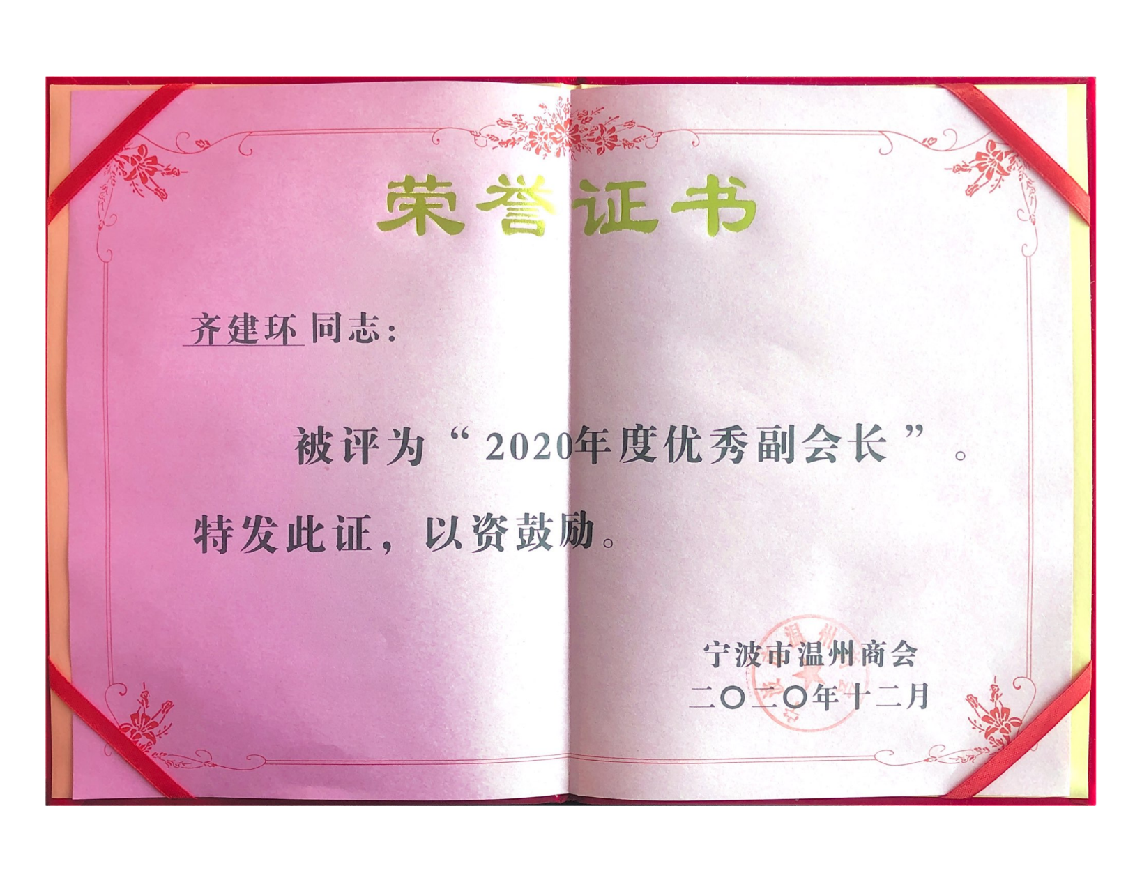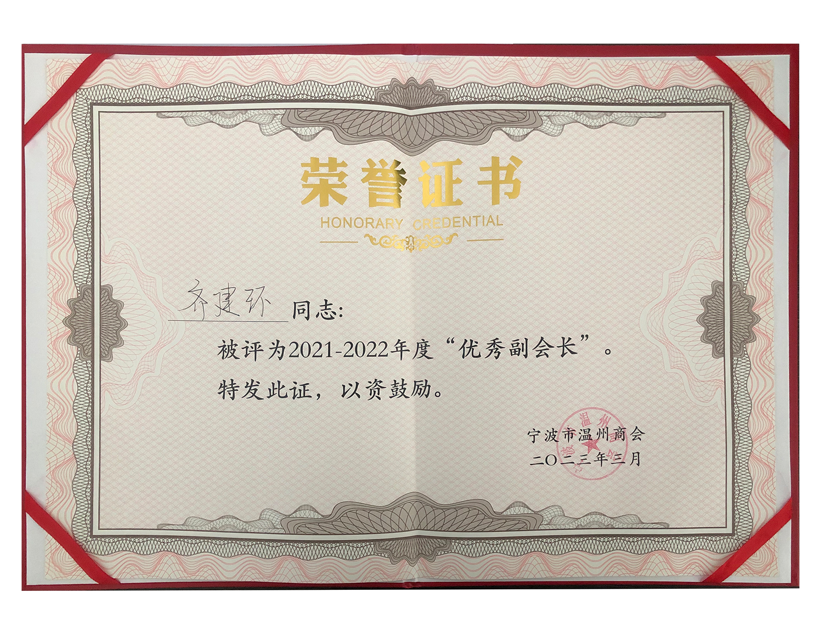 齊建環先生榮獲2023年度溫州商會副會長
