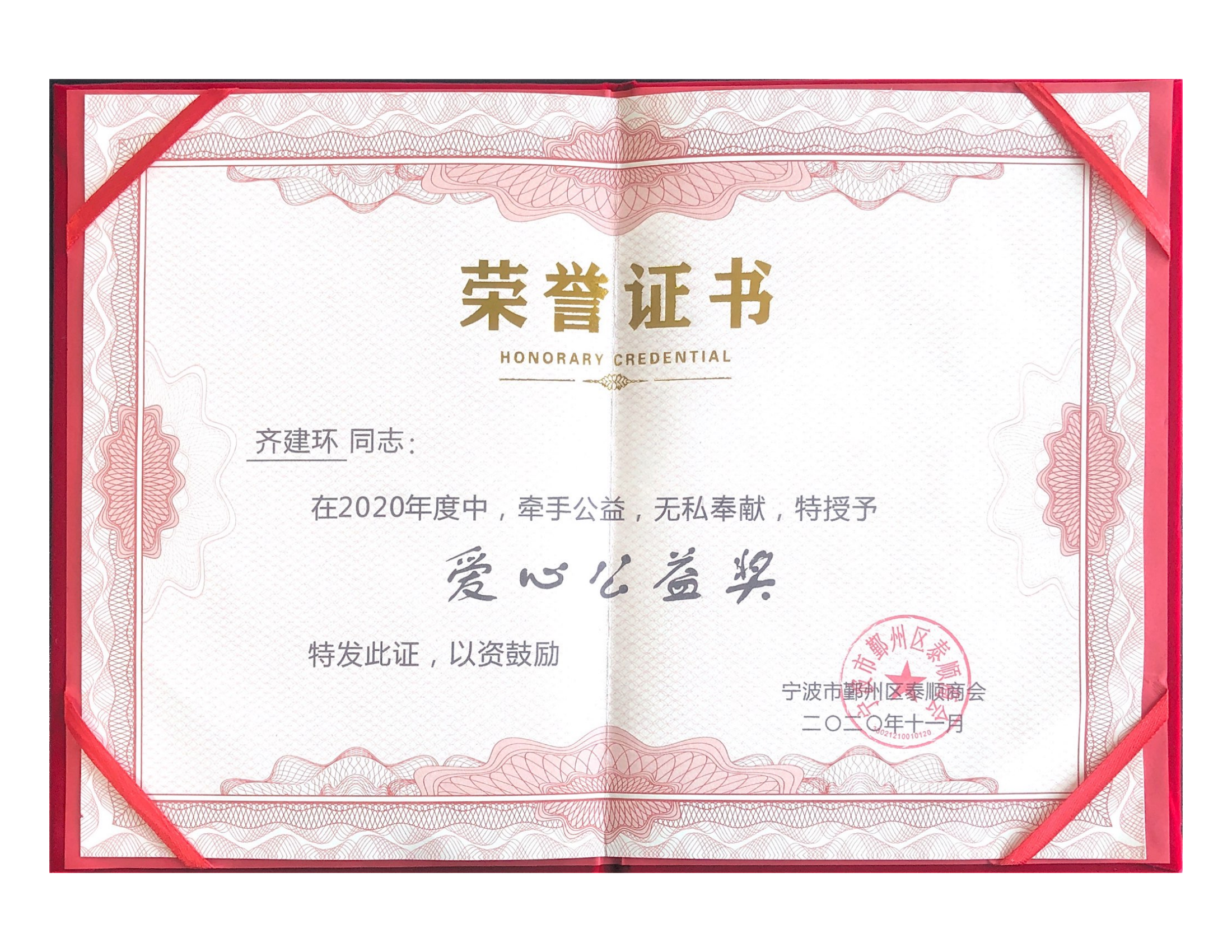 齊建環先生榮獲2020年度愛心公益獎
